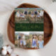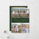 Elegant och modernt helgdag-kort med en manusext som säger "God jul" med stjärnor och 4 bilder. Lägg till ytterligare ett foto på baksidan tillsammans med ditt meddelande. Bakgrund är grönt.