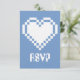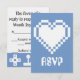 Den här roligten och den här OSA kort har en omvänd blå bakgrund och ett stort 8-bitars vitt hjärta på framsidan. En periwinkle gräns utmed grund kant på kortet med en mönster av vita videospelsrelaterade ikoner, inklusive joysticks, D-dynor, datormöss och pixelhjärtan, dekorerar baksidan med en exempeltext i ställe ovanför som kan anpassas efter dina behov. Se till att du checkar ut de andra produkterna i Multiplayer Mode i Periwinkle-läget för att skapa en verkligt samordnad sökning efter din händelse.