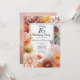 Elegant chrysanthemums and peonies floral design "Sweet 16 Birthday Party" featuring a floral frame of mums and peony flowers in burgundy, burnt orange, apricot and pink on a white background center panel. Back design features a multi-layered coordinating colors watercolor background