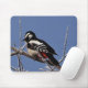 Söt, fläckpecker, sitta på en snöpall gren i blå himmel