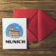 Unik teckning i München-vintagen som visar staden München i Bayern Tyskland. Underbar souvenir- och resepresentidé.
