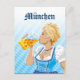 Vykort av hög kvalitet med originalutformning av german. En vacker FESTIVAL-kvinna i en traditionell Dirndl-utrustning är att dricka öl. Du kan enkelt redigera inslag. Illustration av Frank Ramspott, München, Tyskland.