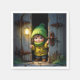 A tiny munchkin kid in warm clothing stands in a doorway, illuminated by a lantern