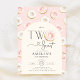 Munkar Rosa 2-års födelsedagsinbjudan. Två söta inbjudan. Snygg trendig design i rosa guld och kräm. Inkluderar munkar, båge och modern typsnitts skript hjärta teckensnitt. Perfekt för en stilren flickas andra födelsedagsfirande. Anpassa med dina egna detaljer. Tryckta Zazzle-inbjudningar eller direkt nedladdningsbar digital utskriftsbar mall.