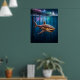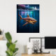 Kraftfull konst med donut-haj med en strömlinjeformad haj formad av texturer från glaserade donuts, polerade glassytor, chokladstrimlor, sockerkristaller och sprödda accenter. Skär genom mörkt havsvatten under en glödande neonbrygga med trästolpar, månstrålar, karnevalsreflektioner, drivande bubblor och avlägsna strandpromenadljus, denna spännande fantasidesign känns djärv och modern. Perfekt för spelrum, strandhus, kök, tonåringsrum eller väggdekorationer.
