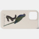 Denna eleganta illustration avbildar munkparakiten, även allmänt känd som munkpapegojan eller Quakerpapegojan, en liten men mycket anpassningsbar papegoja som härstammar från Sydamerika. Iögonfallande med sin livfulla gröna fjäderdräkt, ljusgrå bröst och lång, avsmalnande stjärt, har denna art blivit en av de mest framgångsrika fågelkolonisatörerna utanför sitt ursprungliga utbredningsområde. Förvildade populationer frodas nu i delar av Nordamerika och Europa, tack vare deras anmärkningsvärda motståndskraft och sociala beteende. Munkparakiter är också unika bland papegojor genom att de bygger stora, gemensamma pinnbon, ofta med flera par i en enda struktur.