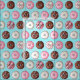Toppet gulligt och precis en söt fest! Detta munktyg presenterar smaskiga choklad-, rosa- och vitdonuts på ett ljust - slösa bakgrund.