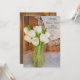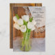Den charmiga lantliga murade krukan och vita tulpaner Country Barn vårbröllopsinbjudan är perfekt för att inbjuda gäster till ditt avslappnade men ändå klassiska bröllop i mars, april eller maj på en lantlig gård eller i western ranch-stil. Denna informella och eleganta bröllopsinbjudan har ett pittoreskt blomfoton av en bukett vita vår-tulpaner i en glasburk, vit brudslöja och vintage spetskantad vit linnehandduk med en brun lada-träbakgrund.