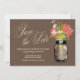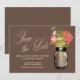 FRÅN VIBRANT GARDEN MASON JAR WEDDING COLLECTION: Perfekt för en landsbygdshustru-stilbröllop Save the Date eller kanske du bara älskar Masonburkar! Masonburk fylld med vilda blommor. En chokladbrun (04:11) bakgrund och vilda blommor i grönt, korall och elfenben. Om du har några frågor om denna design eller vill ha en färgändring, vänligen maila mig paula@labellarue.com Kolla också efter bröllopskort, RSVP, mottagning och gästplacering för matchande kort!