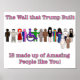 Den rosa texten lyder: Den mur som Trump Byggt består av Fantastisk som du! Det finns flera mänskliga teckenutformningar på en rad. En säkerhetstapp och en del snöflingor ingår också i konstruktionen.