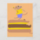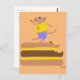 Ett lustigt vykort av en mus ovanpå en burgare som äter den medan man dansar. Lägg till text, namn eller lämna som det är. Jigszasmunstycken finns också.