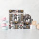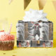 En charmerande animerad mus står självsäkert iförd en elegant grå väst och byxor, accentuerad med en prickig flugbindel och hängslen