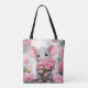 Mus med rosa blomsterbukett tygkasse