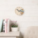 Musblommor blå orange rosa gammal bläddrad papper rund klocka