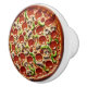 Fun and funny food kitchen cabinet knob featuring a delicious pepperoni pizza with mushrooms and green peppers.