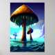 Brun svamp i havet med moln på blå himmel. Det här är en AI-skapad konst.