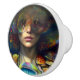 En färgstark trippelformad reflexrummets tema med en vacker kvinna