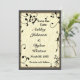 Snygg bröllop-design med musiksymboler, löv och en fjärilsilhuett. En färgstark träpanel och texturerad bakgrundsdesign. Detta är idealiskt för bröllop, årsdagar och speciella tillfällen. Anpassa mallen med din information. Redigera den om du vill ha fler ändringar.
