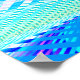 En abstrakt av en flicka i blå jeans, med musik noter på en strimlad psykedelisk bakgrund.