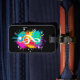 Utformning med musiksymboler på färgglad, grym bakgrund