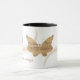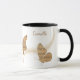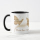 Silhouette Butterfly bilder är fylld med vintage Music lakan på söt mugg. Guld brun text vid grund säger "Musik har vingar", och ditt eget namn finns på andra sidan. Allt placeras på en vit bakgrund, med en subtil guld-stjärna snurrande bland fjärilen bilder. Perfekt till musiker, musiklärare eller någon som kärlek musik!