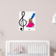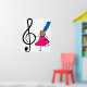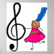 En liten liten flicka från stick figur i lycklig, som har en jättelik symbol för musikalisk treble, illustrerar tecknaden. Anpassa enkelt och välj en egen bakgrund färg eller lägg till text. Bild finns tillgänglig på olika presenter och produkter.