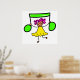 Den griniga tecknaden vismisk illustration av en liten liten flicka från stick figur i lycklig med en gigantisk musiksymbol. Anpassa enkelt och välj en egen bakgrund färg eller lägg till text. Bild finns tillgänglig på olika presenter och produkter.