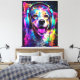 This vibrant design features a happy dog wearing trendy headphones, surrounded by a burst of neon colors and artistic splashes. Perfect for dog and music lovers, this art captures the energy, joy, and love of beats. Add a touch of fun and personality to any space or accessory with this unique piece.