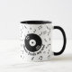 Mugg är perfekt för musiken älskare. Den svarta och vita mugg har ett vinylalbum med musik noter och ord Music matar min själ.