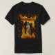 Det är en kombination mellan typsnitt, gitarr, mörk figur, lågor och brandpunkter