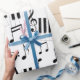 Musiktemat papper omslutning - design omfattar piano tangentbord, musik noter, treble clefs, bass clefs and rests. Underbar för musiklärare och sångare eller pianospelare.