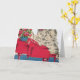 Vintage illustration av två kattungar sitta i ett rosa piano med lakan musik som heter "grattis på födelsedagen"