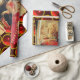 Italienskt sent medieval mästerverk från Fra Beato Angelico : Musik skapar ängeldetalj från Linaioli Tabernacle 1433 Italien, framtagen med gamla åldras parchment-effekter och en ljus 3D-rosa amethyst gem-sten.
