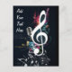 En färglös abstrakt av en vit spaltlapp med en silver-mikrofon, omgiven av musik noter på en svart bakgrund. Underbar för en sångare, instrumentspelare eller någon som kärlek lyssnar på musik.
