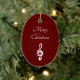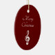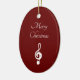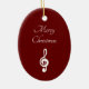God jul ornament, med en vit treble clef-bild på röd bakgrund. Med vit text i eleganten kan du anpassa med ditt eget meddelande. Underbar för att du har lagt till lite klassisk musik i helgdag träd.