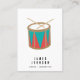 A cute hand drawn musical instrument drum design. A simple and professional way to introduce your business. Social media icons included in the design of this business card for you to use. Personalize your details to create your own unique business card.