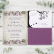 Whimsical Magic Träd of Kärlek Lila Heart Löv Träd på Tea Nedfläckad Warm Silver Toned Metallic Papper med ett överlägg av Antique Lakan Music och lite söt, snabb design för att förbättra kärlek rötterna på denna unika inbjudan till träbröllop...