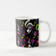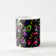 Färgfulla musikaliska symboler och anteckningar med musik, anteckningar, klipp, treble, quaver, baser, crochet på svart bakgrund