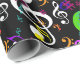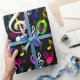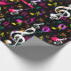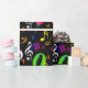 Färgfulla musikaliska symboler och anteckningar med musik, anteckningar, klipp, treble, quaver, baser, crochet på svart bakgrund
