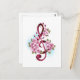Pink treble clef with delicate, detailed pink Japanese cherry blossoms against white background painted over with light blue paint. Blooming pink sakura.