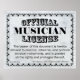 Officiell Musician License. Det finns många verksamheter som omfattar olika typer av utrustning, t.ex. bildrift, flygplan osv., som kräver specialiserad utbildning och licenser. Skapar musik är något som vanligtvis kräver utbildning: lektioner, praktik och repetitioner. Borde det inte krävas av de blivande musikerna att de får tillstånd att använda utrustningen, dvs. deras musikinstrument?