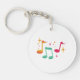 : En tecknad som illustrerar två färgstarka musik noter och två stjärnor på en rosa bakgrund.