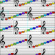 Musik, anteckningar, regnbåge med flera färgader. Skämt söt vit