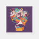 Färgfull grunge-reflexdesign i stil med "Life is musik"-textdesign med återblommor, cirklar och gramofondekoration