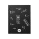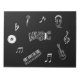 Ett anteckningsblock med temat musik. Vit musik, temad grafik, på ett svart omslag, centrerad kring musiken i ord.