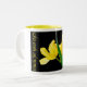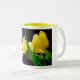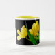 Mugg har ett originalfoto av ZoeSPEAK av gult-tulpaner och deras vackra löv av grönt mot en mörk bakgrund. Blommorna ser ut som trumpeter, alltså texten som lyder "musik för ögon". Det heliga Mugg är underbart för Mors dag, och varje dag. .