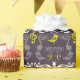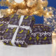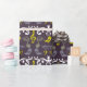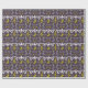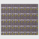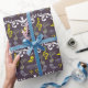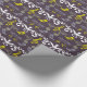 Roligt mönster i musik noter och kluvar och småfåglar i lila och guld.