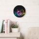Musik noter på en färgglad bakgrund presenteras på som denna, tar tid på coolaväggen för de som älskar musik.
