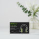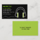 MusikDJ-visitkortar med djärv grönt på sidodesignen för svart två, som inkluderar en kall uppsättning av diskjockeyhörlurar, text som du kan lätt personifiera, och planlägger att stativ ut för ett underbart första intryck, som ska minns. En modern design som var designad för något musikunderhållare, underhållning eller party DJ.