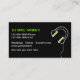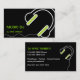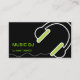 MusikDJ-visitkortar med djärv grönt på sidodesignen för svart två, som inkluderar en kall uppsättning av diskjockeyhörlurar, text kan planlägger du personifiera online och att stativ ut för ett underbart första intryck. Designat för någon diskjockey, deen jay servar, eller mobil underhållning.